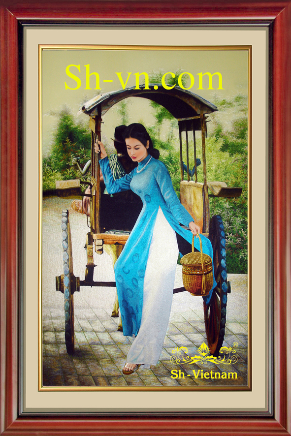 Những chiếc áo dài truyền thống, thướt tha tôn lên từng đường nét cơ thể thanh thoát của người phụ nữ Việt Nam đã đi vào bao loại hình nghệ thuật thi, họa và tranh thêu tay đẹp cũng không ngoài lệ. Vẻ đẹp tinh khôi, đằm thắm ấy khiến ai ngắm nhìn một lần thì cũng phải ngất ngây.