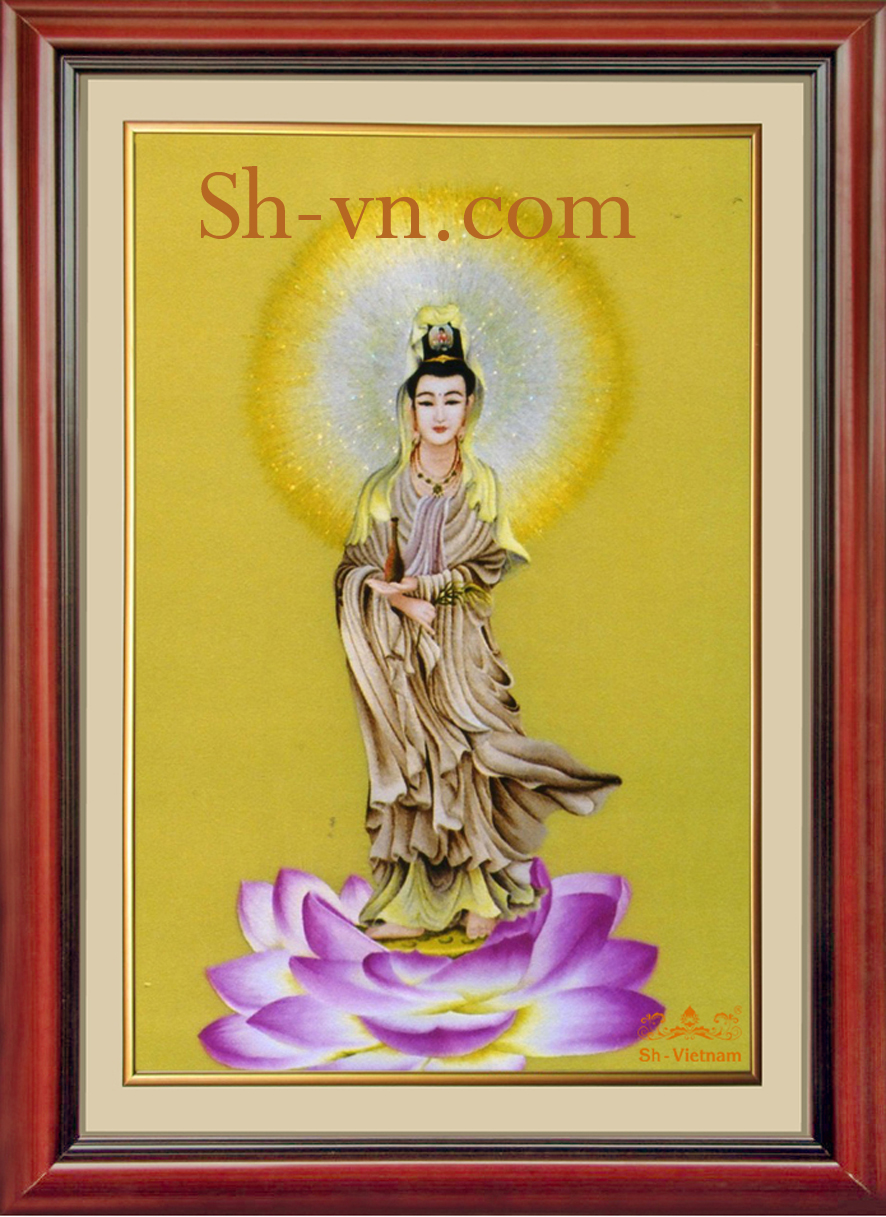 Những tác phẩm tranh thêu tay đẹp này phù hợp cho tất cả các đạo giới, nếu là người đạo Phật thì sẽ hướng về Phật Bà Quan Âm với nét mặt hiền hậu của một người Mẹ, với hình ảnh quen thuộc tay phải là nhành Dương Liễu, tay trái là bình nước Cam Lộ rưới tới đâu là ban phát tình thương đến đó để cứu độ chúng sanh.