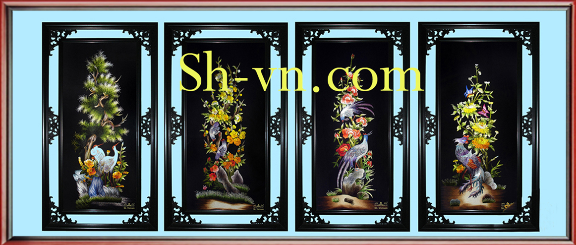 Các bức tranh thêu tay này có tên ngắn gọn là “tứ quý” vừa tượng trưng cho 4 mùa, ẩn sâu vào đó là 4 đức tình của “Tứ Quân Tử” xuất xứ từ đất nước Trung Hoa. Trong 4 loài, thì Tùng, Trúc, Mai là 3 loài chịu được sương giá tuyết lạnh hay còn gọi là “Tuế Hàn Tam Hữu”; dẫu lạnh nhưng Tùng vẫn hiên ngang vững chãi, Trúc vẫn xanh tươi, Mai vẫn nở vàng hoe. Chính vì khả năng đó, những loài cây này được ví von hóa đại diện cho những đức tính cần có phù hợp với câu “Chính nhân quân tử, ngay thẳng trung thực”.
