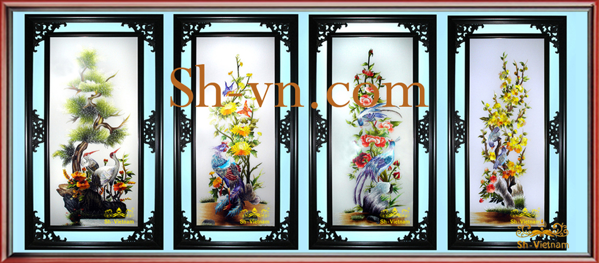 Còn nếu yêu chuộng dòng tranh thêu phong thủy lâu đời hơn, quý khách có thể tìm hiểu các bộ tranh thêu tay tứ quý. Đây là những tác phẩm tranh miêu tả vẻ đẹp bốn mùa trong năm qua hình ảnh các loài hoa, loài cây mang ý nghĩa biểu tượng.