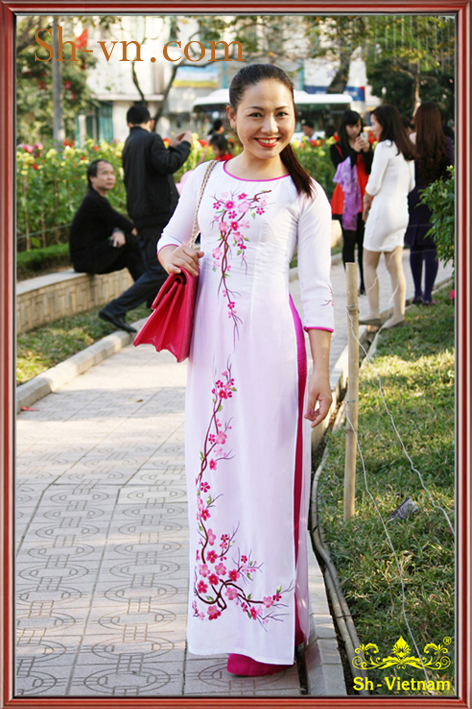 Áo dài thêu tay hoa Đào – Đẹp quyến rũ!