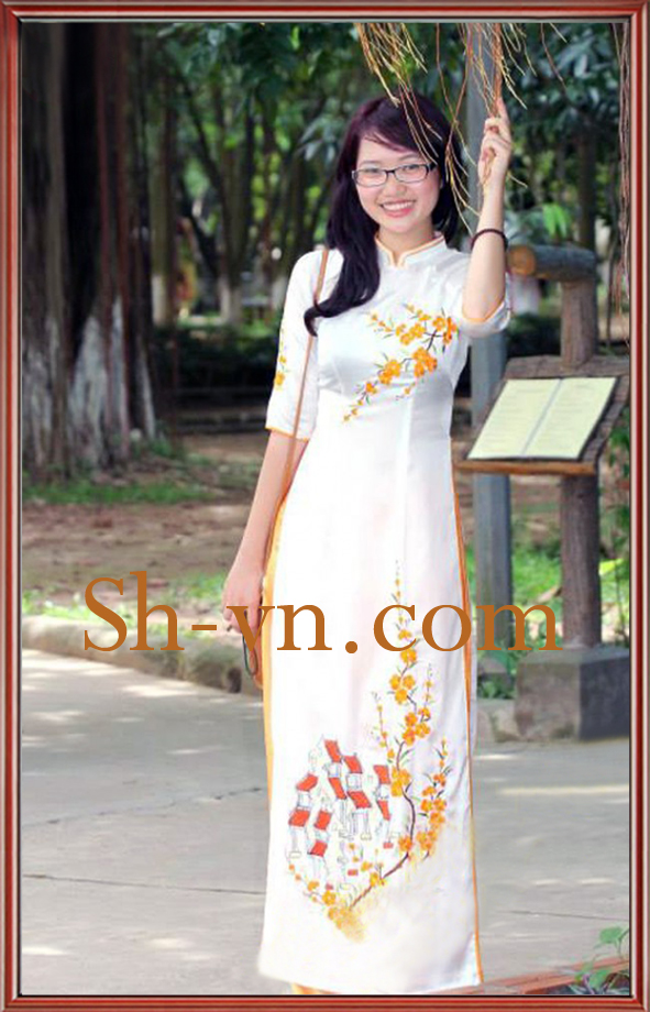 Áo Dài Thêu ‘Mẫu thêu hoa Mai (23)’