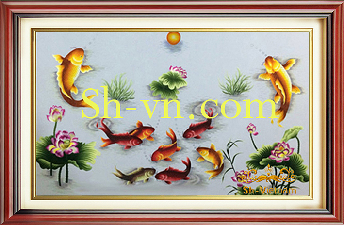 – Cửu ngư: Cá chép vốn đã là biểu tượng của sự kiên trì, bền chí và thành công, là biểu tượng mang tính linh thiêng và cao quý. Với biểu tượng cá chép vượt vũ môn hóa rồng, từ lâu cá chép cũng là biểu tượng của sự thăng tiến công danh. Với người làm kinh doanh, những bức tranh thêu tay phong thủy cá chép là nguồn lộc tài dồi dào. Nếu cá chép lại được là con số 9 nữa thì lại là sự phát sinh lộc tài, may mắn trong kinh doanh.