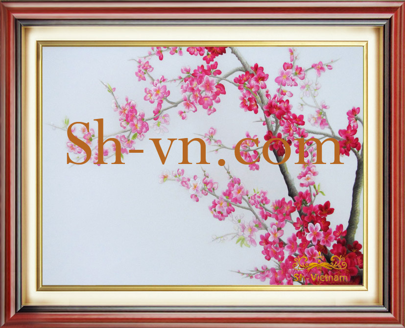 Cùng thưởng thức nét đẹp chân thực của bộ tranh thêu cao cấp này qua tác phẩm có tên gọi “Hoa Đào (2389)”. Đây là một tác phẩm thực hiện hết sức tỉ mỉ, công phu từ chất liệu tơ tằm thiên nhiên mềm mượt.