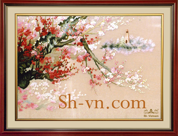 Để thưởng thức trọn vẹn vẻ đẹp mà tranh thêu tay hoa Đào mang lại, ta hãy thử nhắm mắt và thả hồn mình vào một không gian mênh mang cao rộng, nơi ấy có những nhành hoa Anh Đào đang dịu dàng khoe sắc, tỏa hương, mang đến cho đời biết bao dư vị nồng thắm.