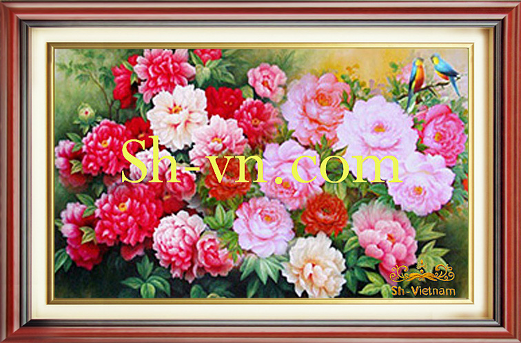 Dựa trên ý tưởng bà Chúa của những loài hoa, Sh Vietnam đã cho ra tác phẩm tranh thêu tay đẹp mang tên ‘Phú quý mãn đường (1038)’ được thực hiện công phu, tinh tếtrên nền vải lụa tơ tằm thiên nhiên cao cấp, miêu tả vườn hoa vào ngày nắng đẹp.