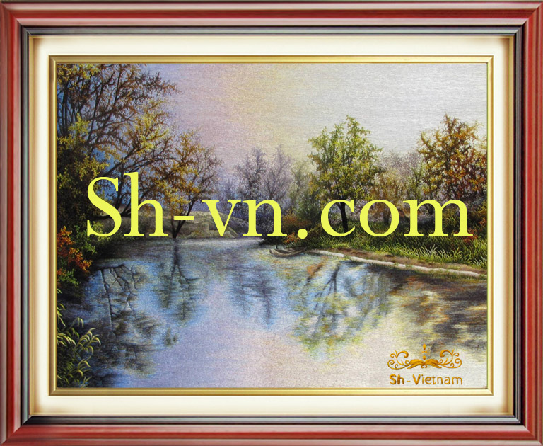 Tranh thêu phong cảnh làng quê ‘Bến nước tình quê’ (2344)