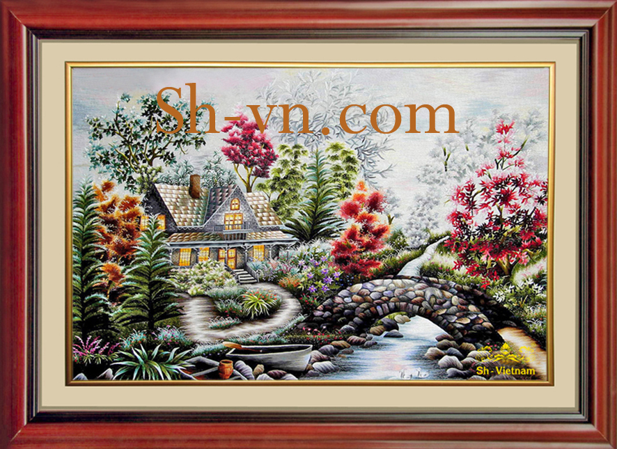 Tranh Thêu Tay Cao Cấp ‘Ngôi nhà hạnh phúc’ (2121)