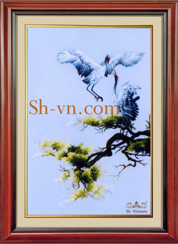 Trong bộ tranh thêu tay cao cấp này người ta hay chọn hình ảnh đôi chim Hạc để ẩn dụ cho một tình yêu hạnh phúc, trường tồn và Sh xin giới thiệu đến quý khách bức tranh mang tên “Bên nhau ngày xuân (1014)” được thêu tay tỉ mỉ từng đường kim mũi chỉ trên nền vải lụa tơ tằm thiên nhiên.