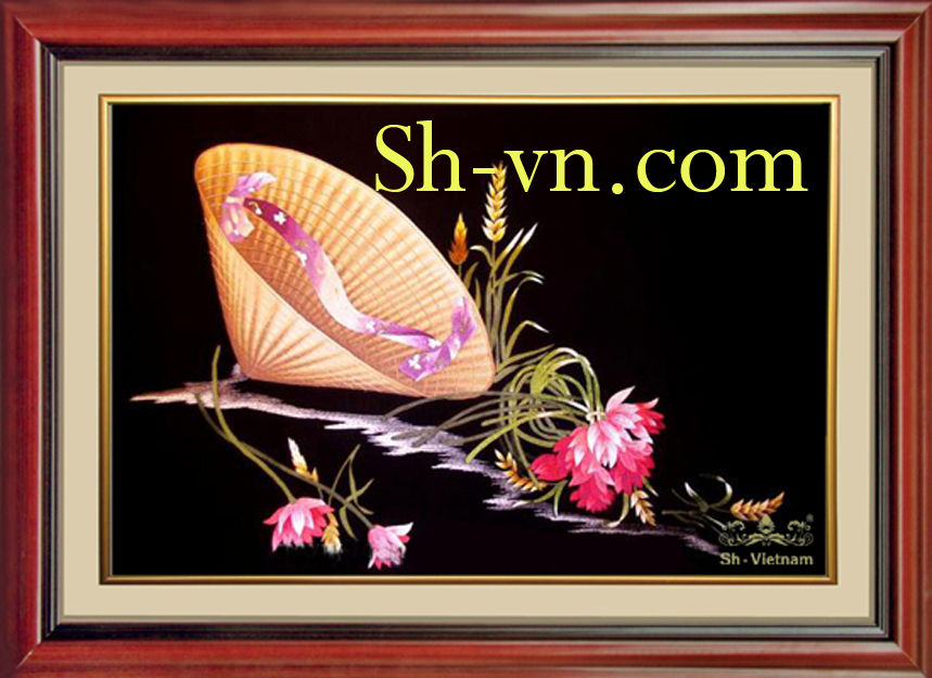 Tranh thêu tay hoa đẹp ‘Nón hoa (83)’