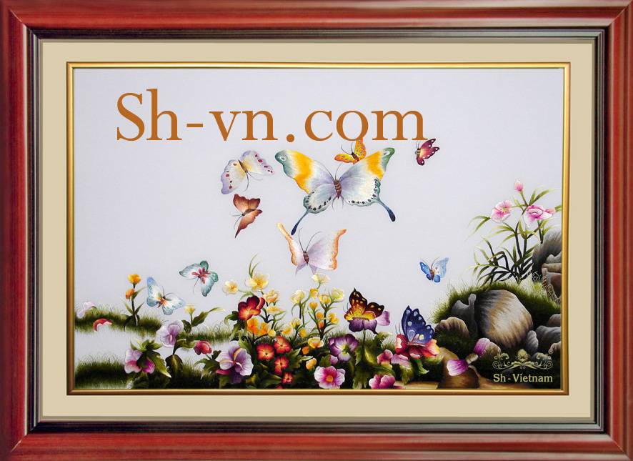 Tranh thêu tay hoa đẹp ‘Tung tăng hoa bướm (92)’