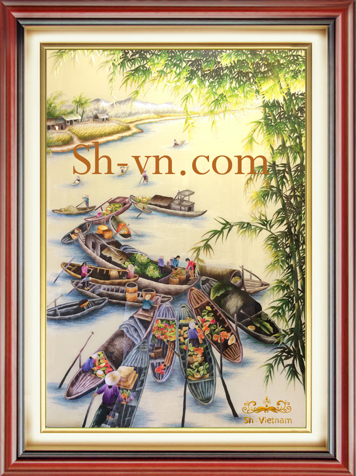 Tranh thêu phong cảnh làng quê là một trong những thế mạnh của công ty quà tặng Sh. Với kỹ thuật thêu tay đạt đến trình độ điêu luyện cùng sự nhạy cảm với cảnh đẹp quê hương, nghệ nhân Sh Vietnam đã thực hiện nên nhiều tuyệt tác tranh đẹp.